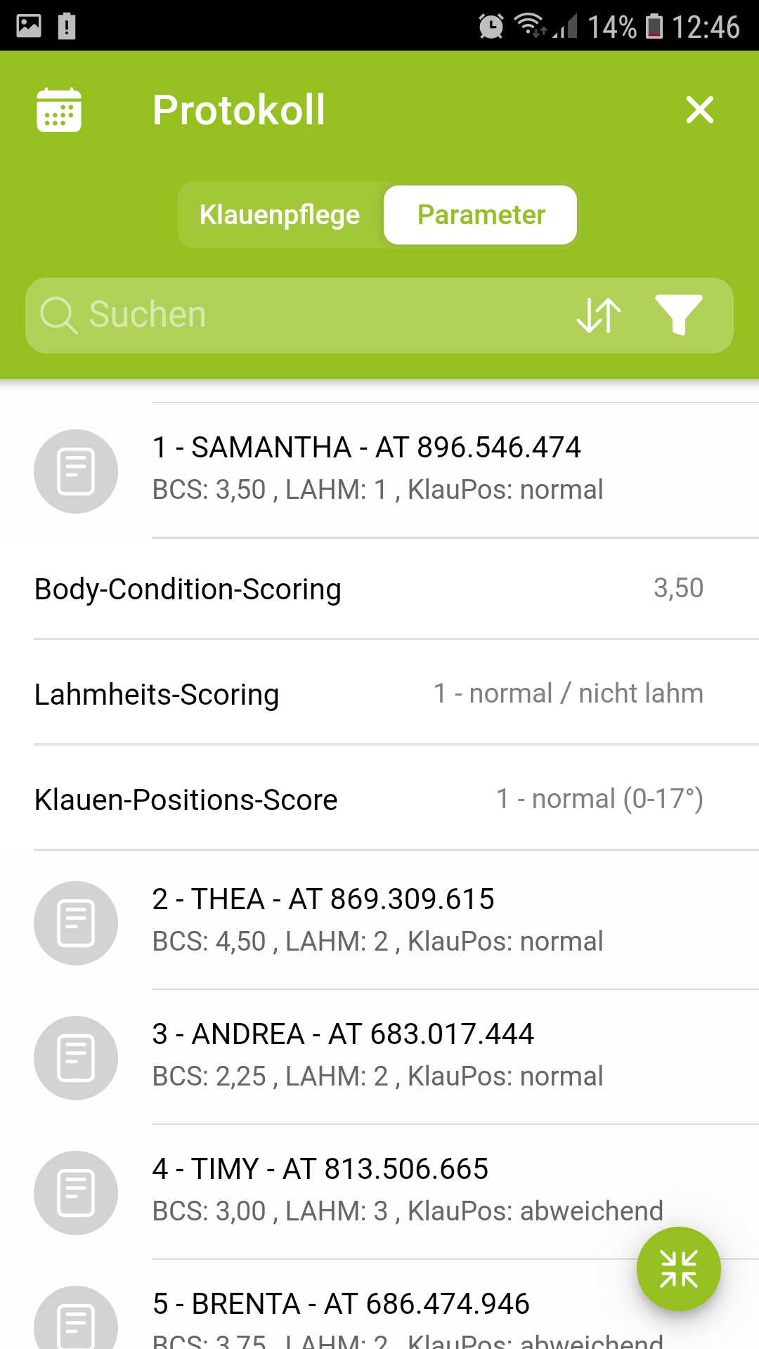 - Führung eines Klauenpflege- und Parameter Protokolls