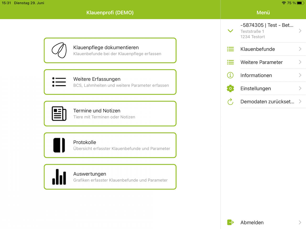 Mit dieser App können sie die Klauenpflege Ihrer Rinder schnell und einfach dokumentieren. Hinterlegt sind dafür die Klauenbefunde nach dem ICAR Atlas für Klauengesundheit, sowie die verschiedenen Mortellaro Stadien aus dem Appendix. Durch die Anbindung an den Rinderdatenverbund (RDV) steht Ihnen ihr gesamter Tierbestand jederzeit tagesaktuell zur Verfügung. Verschiedene Sortier- und Filtermöglichkeiten ermöglichen schnelles und effizientes Arbeiten. Nach Abschluss der Dokumentation finden sie die aktuellen und historischen Klauenbefunde in einem übersichtlichen Klauenpflegeprotokoll. Um keine Nachkontrolle, Verbands- oder Klotzabnahme zu übersehen, können sie sich zu jedem Tier einen Termin mit Erinnerungsfunktion oder eine Notiz hinterlegen. Die Analyse der Dokumentation erleichtert Ihnen die App mithilfe anschaulicher Grafiken.