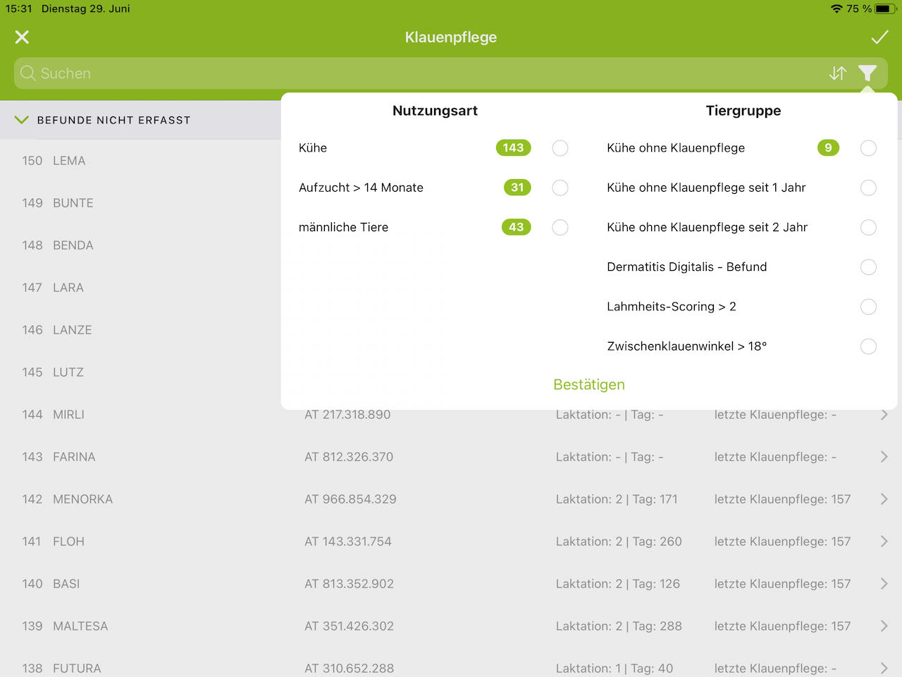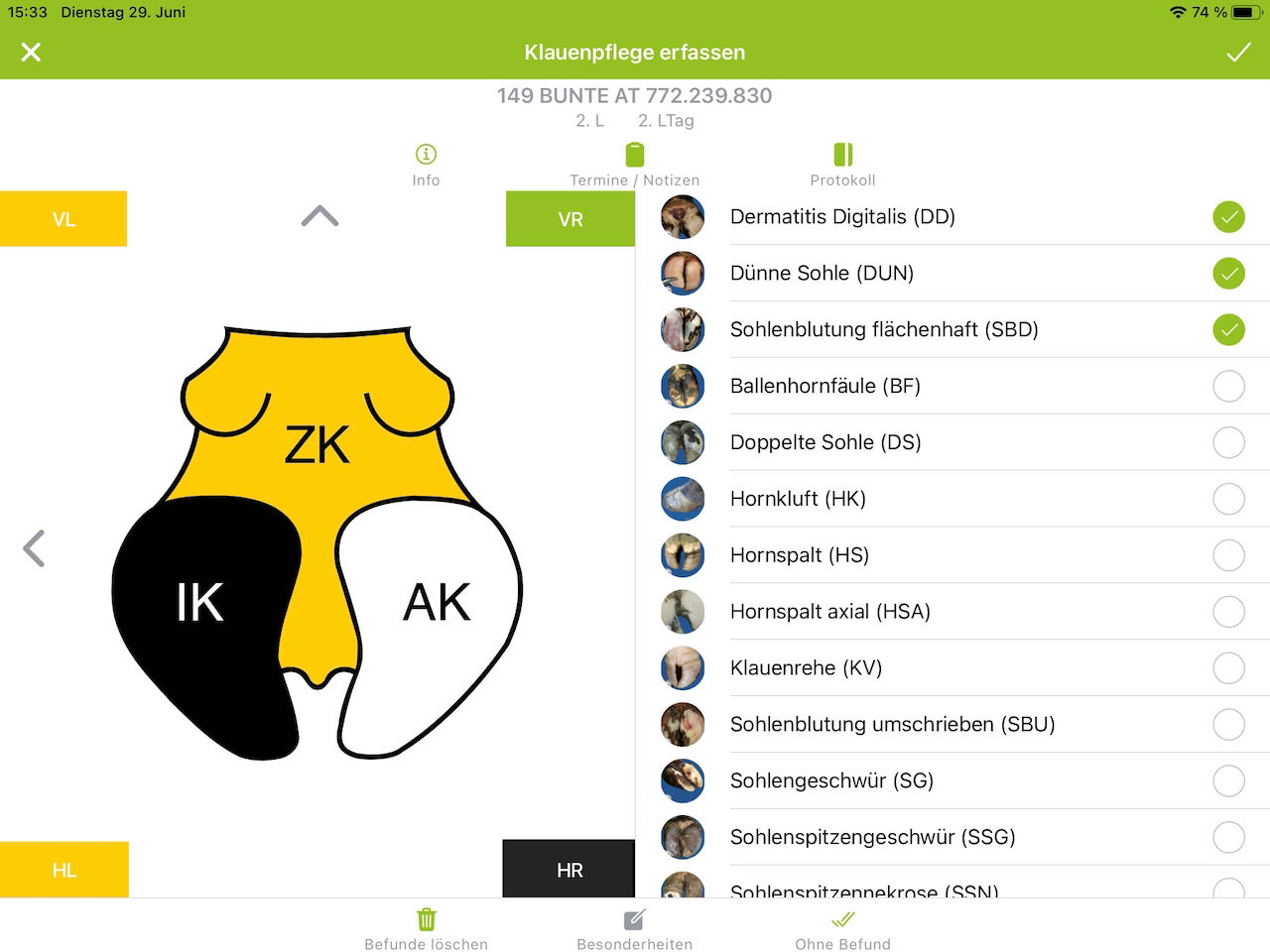 Klauenpflege dokumentieren