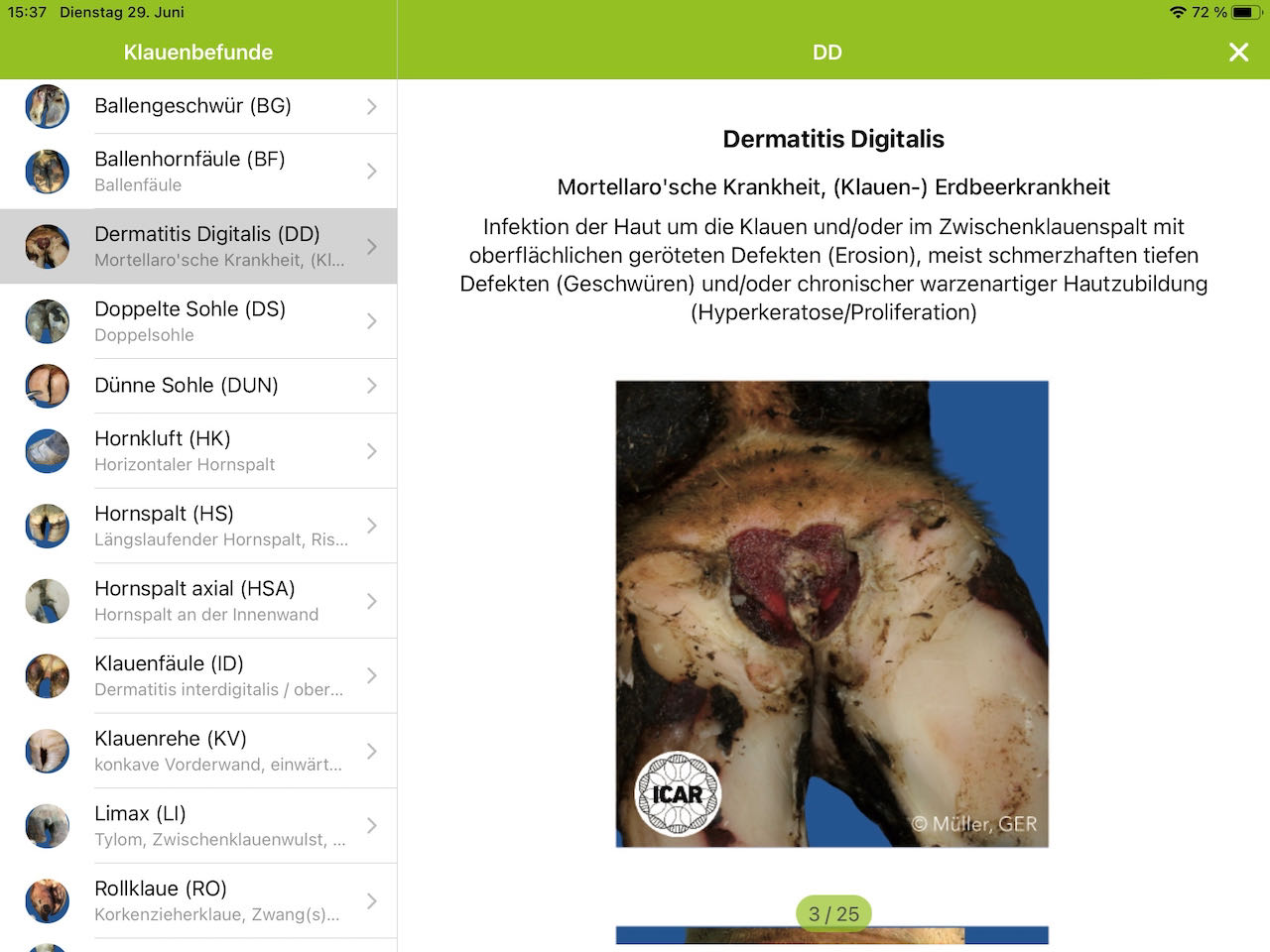 - Nachschlagewerk mit Bildern/Videos der Klauenbefunde und weiteren Parameter