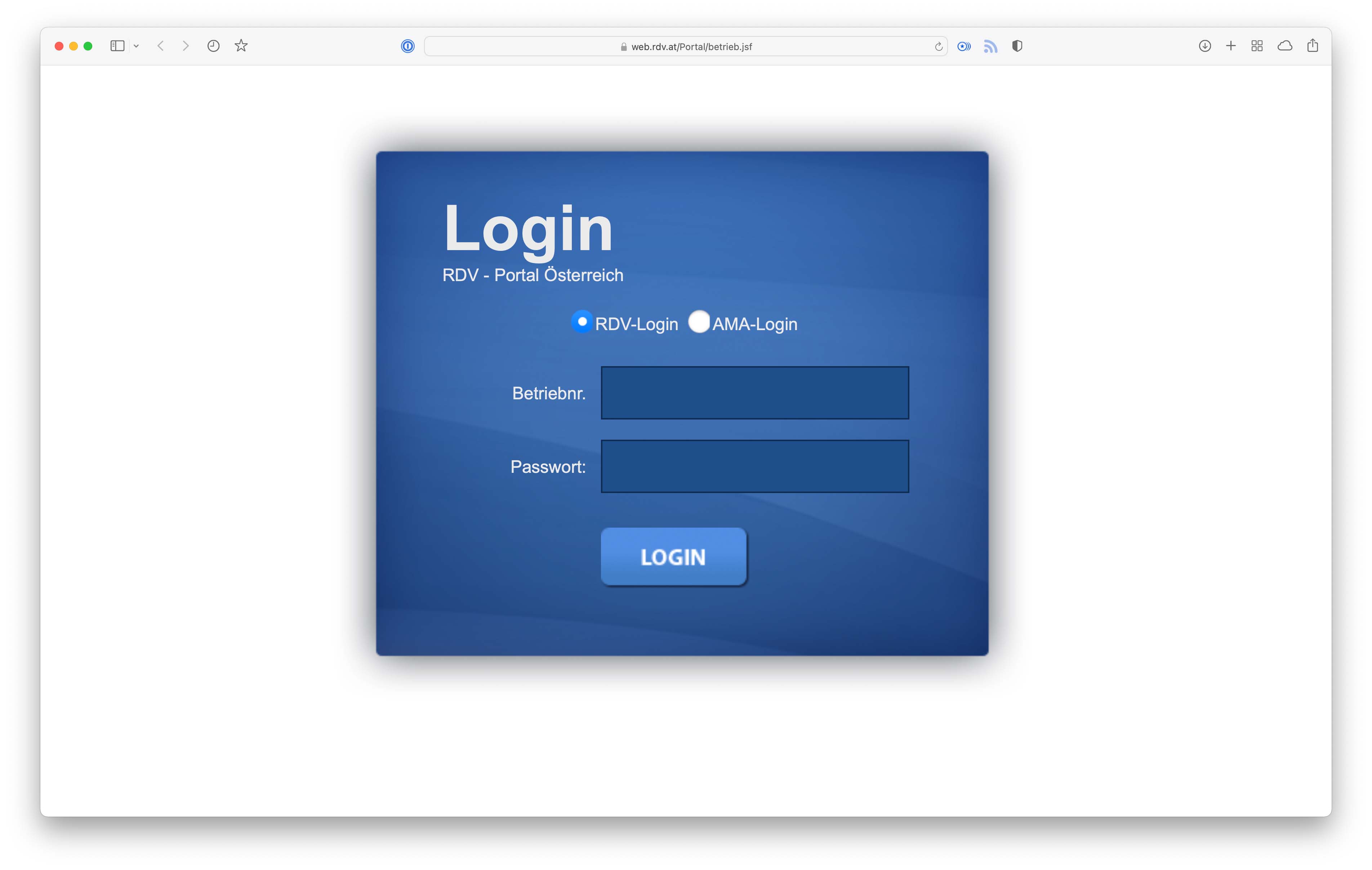 Es gibt zwei Möglichkeiten für das Login in das RDV-Portal. Mit ihrem AMA-Pin oder mit dem RDV-Login, dieses erhlaten sie von ihrem Landeskontrollverband. Wechseln sie zwischen den zwei Login-Möglichkeiten mittels des Radiobutton.
