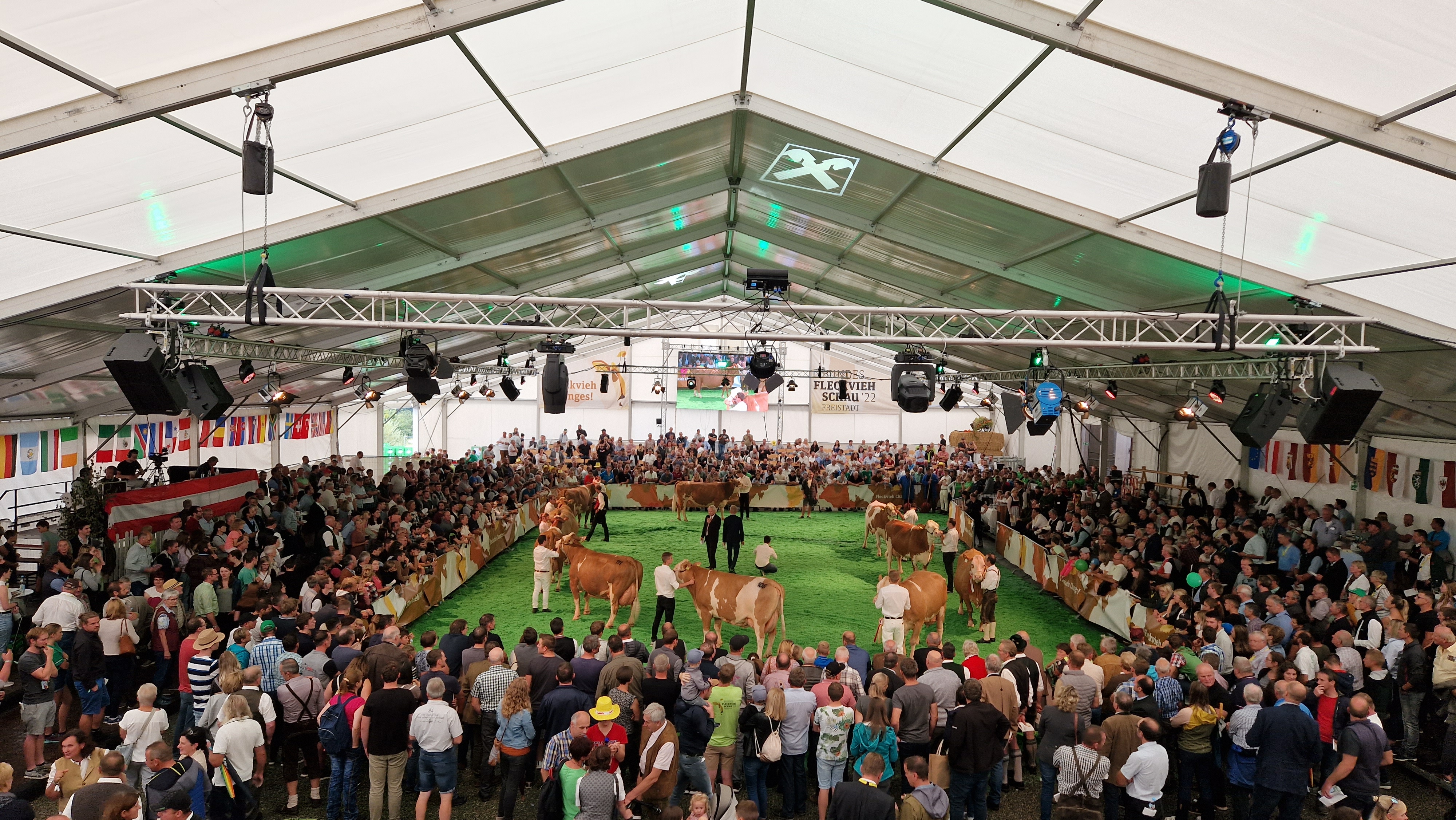 Freistadt war am Wochenende des 3. und 4. Septembers Treffpunkt der nationalen und internationalen Fleckviehviehszene. Mit Fug und Recht kann man behaupten, dass die Bundesfleckviehschau in allen Belangen neue Maßstäbe setzte, was die Qualität der Ausstellungstiere, die Professionalität des Events und das Interesse der Besucher traf. Mehrere Tausend Besucher aus mehr als 30 Nationen verfolgten an den zwei Tagen vor Ort das absolute Highlight des Jahres, fast ebenso viele konnten via Livestream dabei sein.