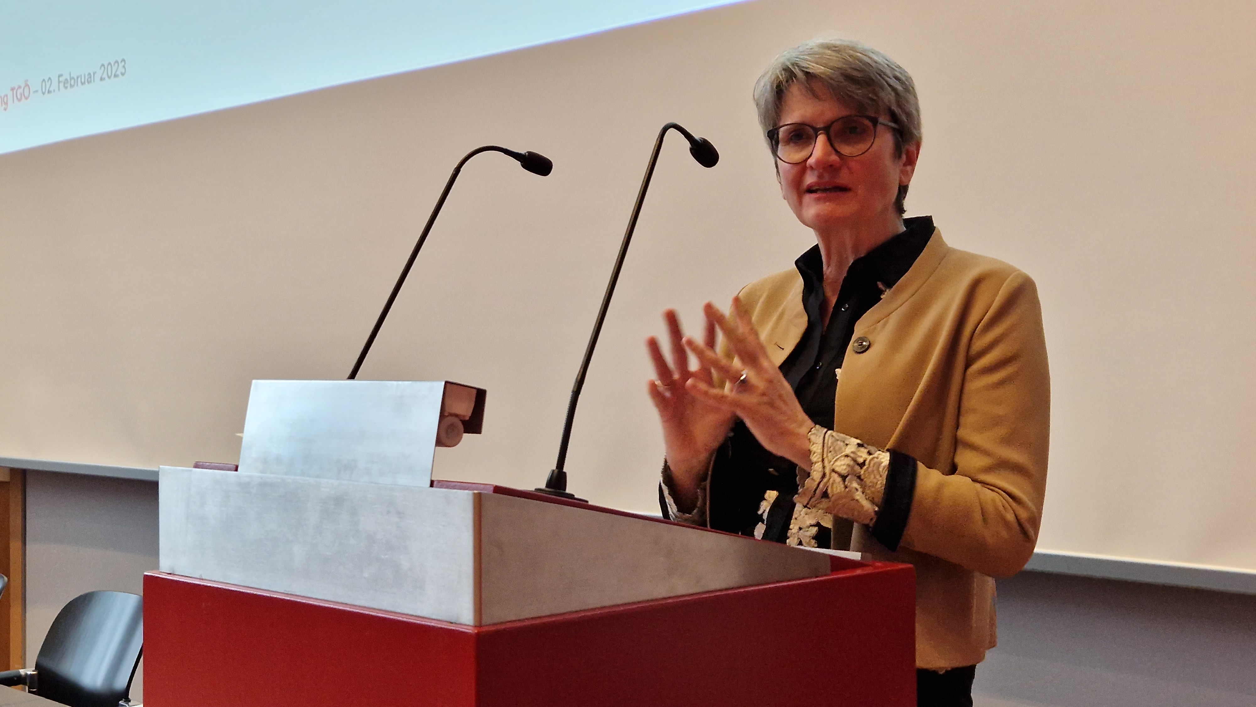 Dr. Petra Winter, Rektorin der VetMedUni Wien begrüßte die Teilnehmer:innen als Gastgeberin der Gründungsveranstaltung zum TGÖ. -