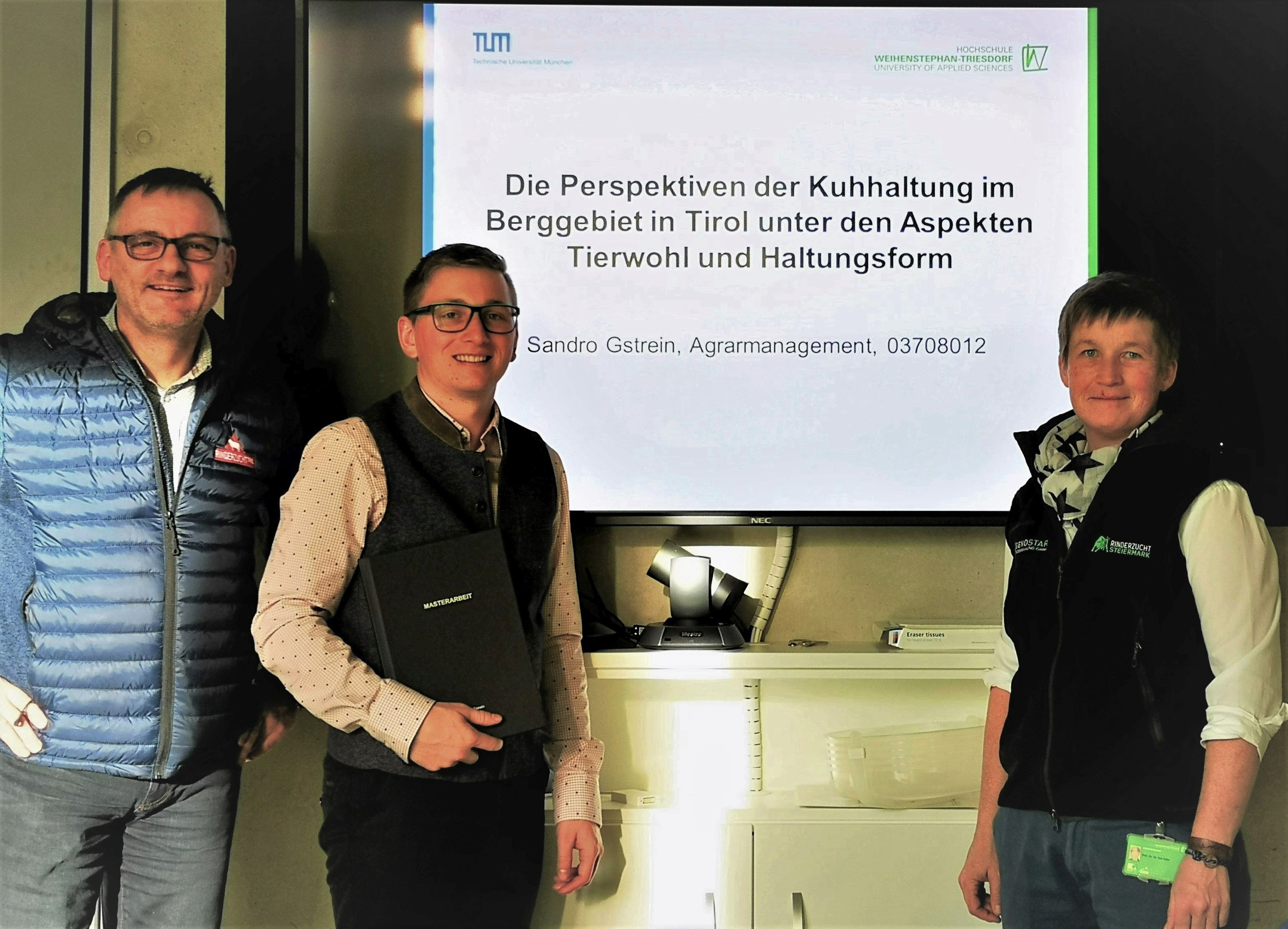 2019 führte Sandro Gstrein in Zusammenarbeit mit der Landwirtschaftskammer und Rinderzucht Tirol im Rahmen seiner Masterarbeit die über die Grenzen vielbeachtete „Tierwohlstudie“ über die Perspektiven der Kuhhaltung im Berggebiet in Tirol unter den Aspekten Tierwohl und Haltungsform durch. Die Masterarbeit wurde von seinen wissenschaftlichen Betreuerinnen Prof. Dr. Dr. Eva Zeiler und Paula Heine MSc begleitet. Für die Projektbetreuung vorort war Christian Moser zuständig.