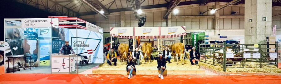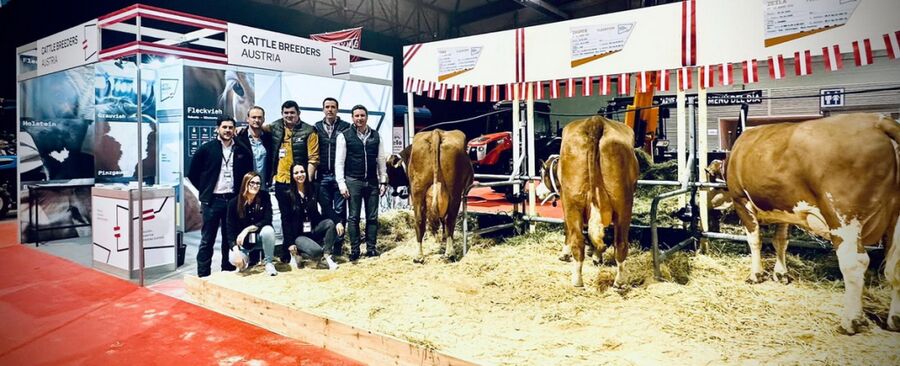 Der österreichische Messeauftritt war aufgrund des gelungen Standkonzepts ein absoluter Publikumsmagnet. Die Messekollektion bestand aus drei Kühen sowie einer Gruppe von vier Zuchtkälbern. Die ausgewählten Kühe überzeugten mit Euterqualität und hohen Leistungszahlen, vor allem auch, was die in Spanien stark im Fokus stehenden Milchinhaltsstoffe betrifft. Die Box mit den österreichischen Zuchtkälbern war ein beliebtes Fotomotiv und konnte gleichzeitig mit höchster genetischer Wertigkeit der Tiere die Experten überzeugen.