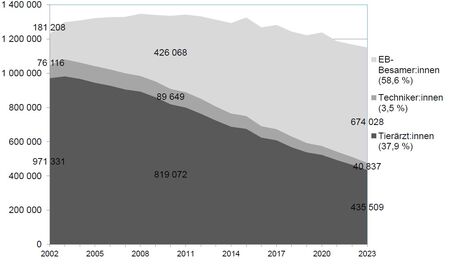 Die Besamungsdichte, errechnet aus der Anzahl aller künstlichen Besamungen in Österreich, die bei den aktuell 465.060 (+0,25 %) Kontrollkühen der Milch- und Fleischleistungskontrolle durchgeführt wird, lag im Jahr 2023 bei 93,8 % und ist damit um 0,3 Prozentpunkte gesunken. Die restlichen 6,2 % erfolgten über den Natursprung. Insgesamt wurden 1 150 374 Besamungen durchgeführt, um 17.218 bzw. 1,5 % weniger als im Jahr 2022. Die meisten Besamungen wurden mit 58,6 % von den Eigenbestandsbesamer:innen durchgeführt, gefolgt von den Tierärtz:innen mit 37,9 % und den Besamungstechniker:innen mit 3,5 %.