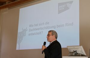 In einer Festveranstaltung brachte Dr. Christian Fürst von der ZuchtData einen Überblick über die erfolgreiche Entwicklung der länderübergreifenden Zuchtwertschätzung und sprach den Dank des österreichischen Zuchtwertschätz-Teams für die langjährige Zusammenarbeit aus.