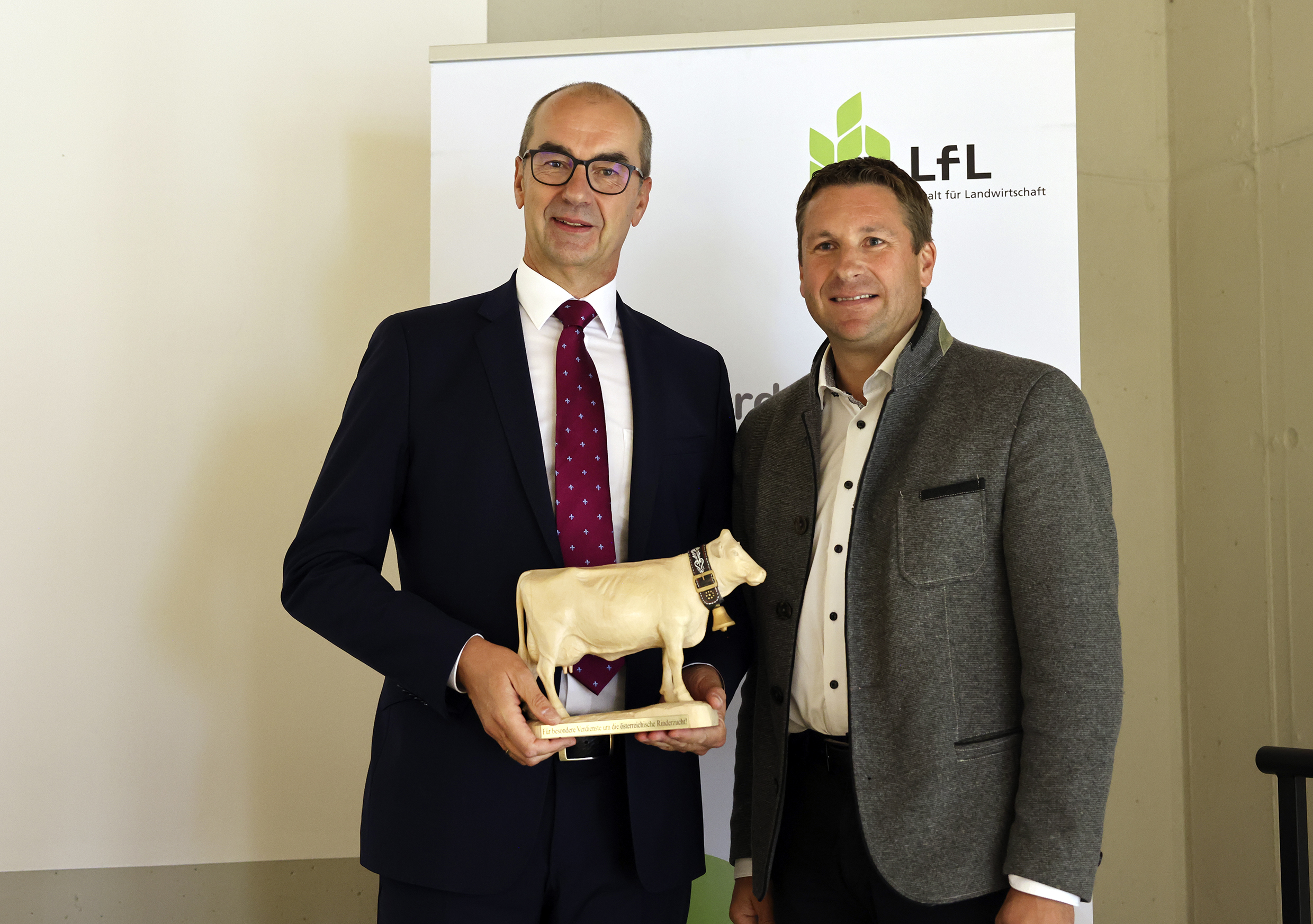 Die Leistungen von Kay-Uwe Götz wurden seitens des Präsidenten der Landesanstalt für Landwirtschaft und von Vertretern mehrerer bayrischer Nutztierverbände gewürdigt. Für Österreich sprach Geschäftsführer Reinhard Pfleger eine Dankesbotschaft an einen großen Tierzüchter und strategisch wichtigen Verbündeten der österreichischen Rinderzucht.