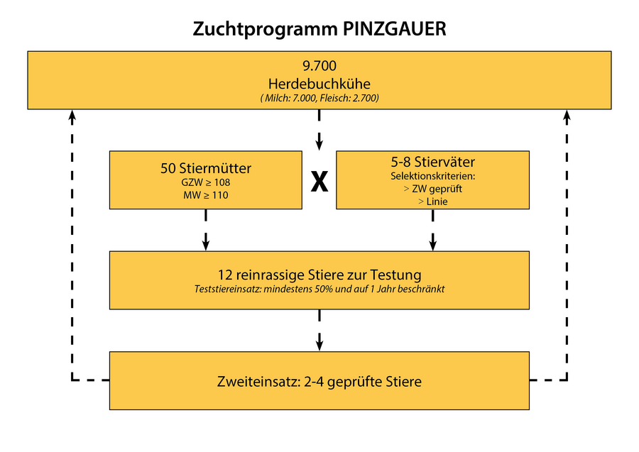 Das Pinzgauer Rind präsentiert sich derzeit als leistungsbetonte Doppelnutzungsrasse und macht es aufgrund der breiten genetischen Varianz sowohl für die Milch- als auch Fleischproduktion interessant.