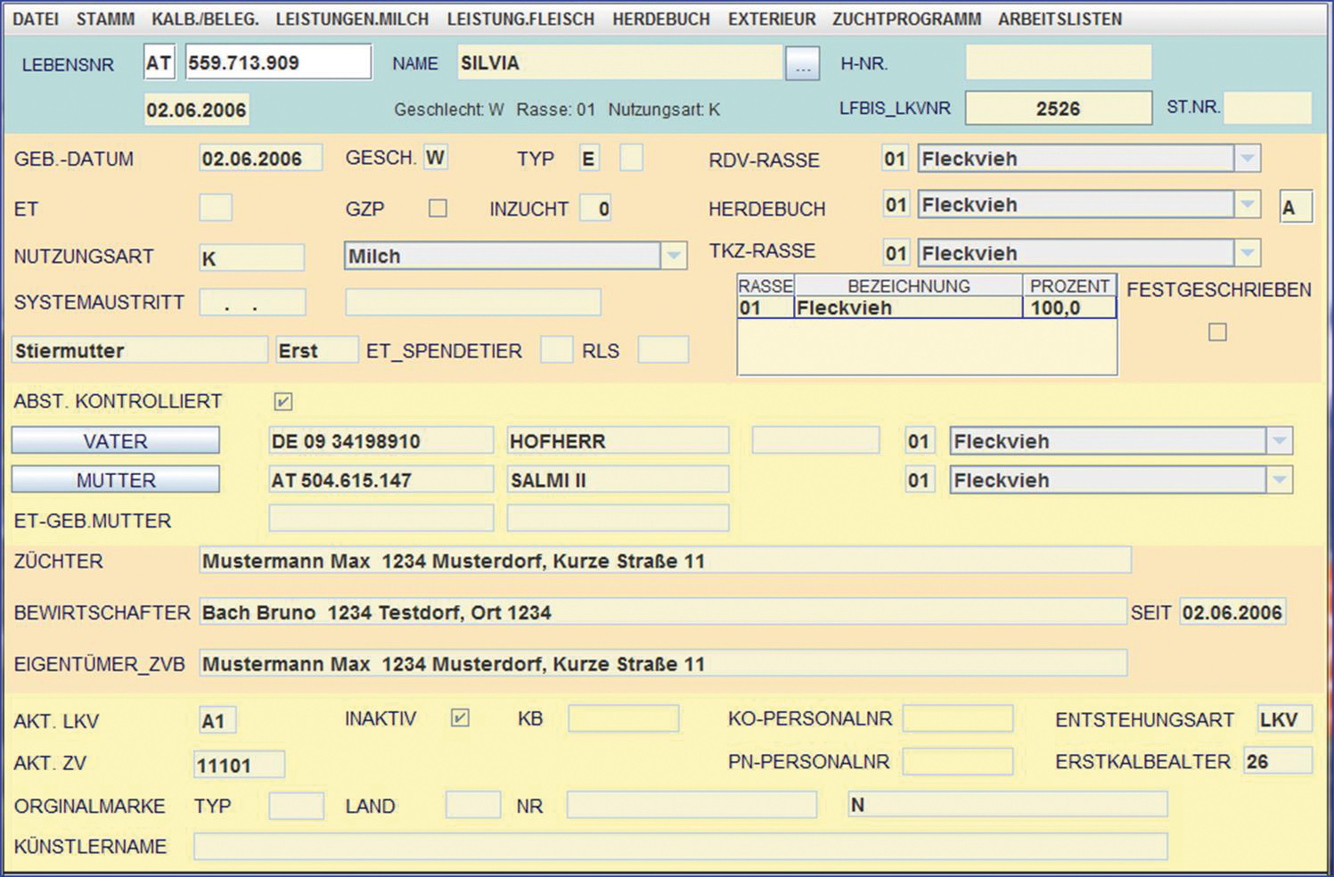 11. November 1999: Der Rinderdatenverbund geht in Betrieb. Die Abbildung zeigt die „Hauptmaske Tier“ aus dem „Modul Tier“ im Rinderdatenverbund RDV. -